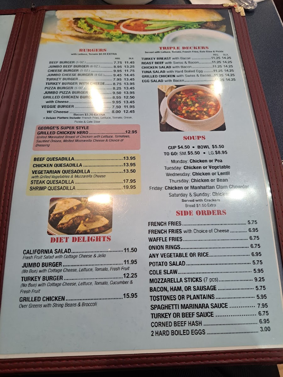 George's Diner in the Bronx is a beloved spot that masterfully blends classic diner fare with hearty breakfast options and satisfying deli sandwiches. Their menu is a comforting journey through flavors like the Tuna “George’s Style” sandwich, packed with white tuna, crisp lettuce, tomato, and onion on hero or pita. For those craving breakfast delights, the Western Omelette and Steak & Eggs provide a fulfilling start to the day, while lighter options like the Cheese Omelette or Plain Eggs offer simple satisfaction.
